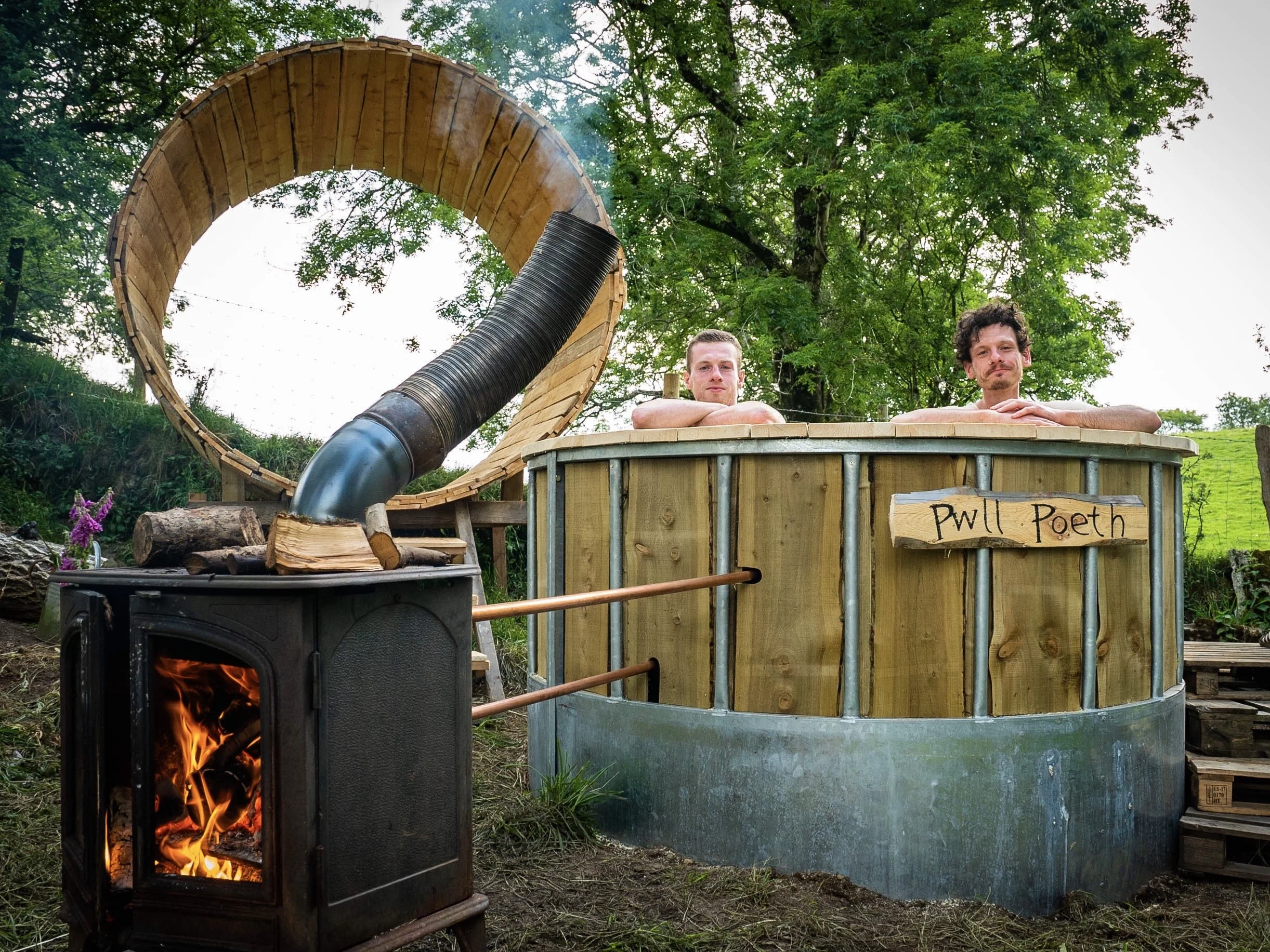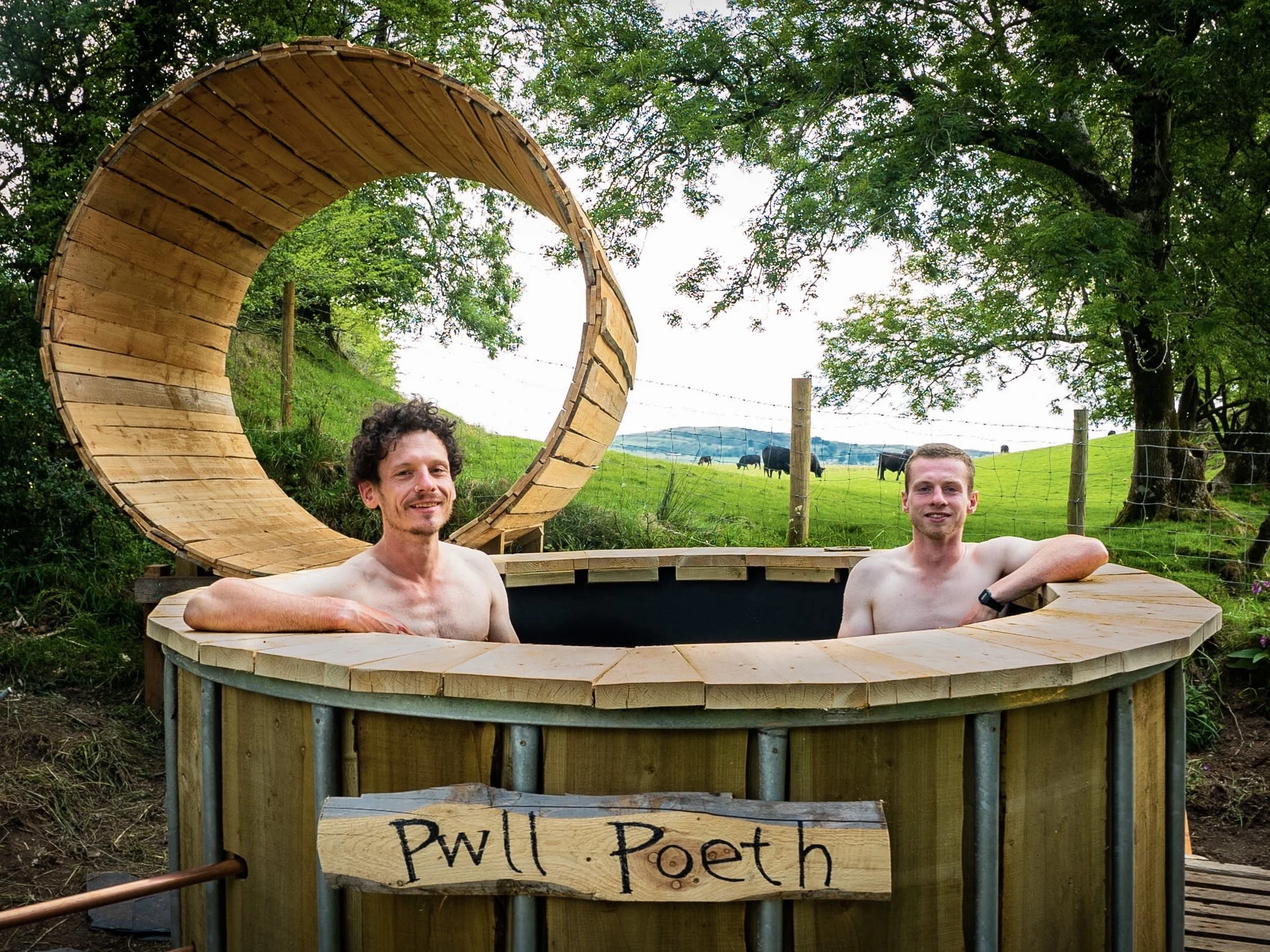 ‘DIY ar y fferm!’ …mae gan pawb ei hanesyn locdown swreal, un fi oedd cyfres ddylunio wedi ffilmio adref, gyda Tudur fy mrawd fel glamorous assistant di fynadd! Fe adeiladom gaban glampio ‘Y Cwt Lleuad’, trawsnewid hen gamperfan wedi ysbrydoli ga anturiaethau Wels Awê ac adeiladu twba twym eco efo hen stof a cafnau bwydo gwartheg!